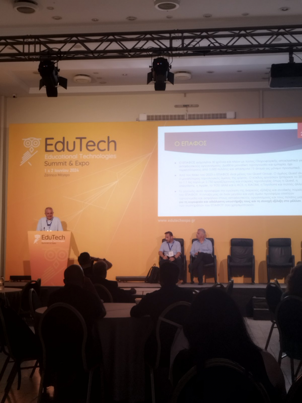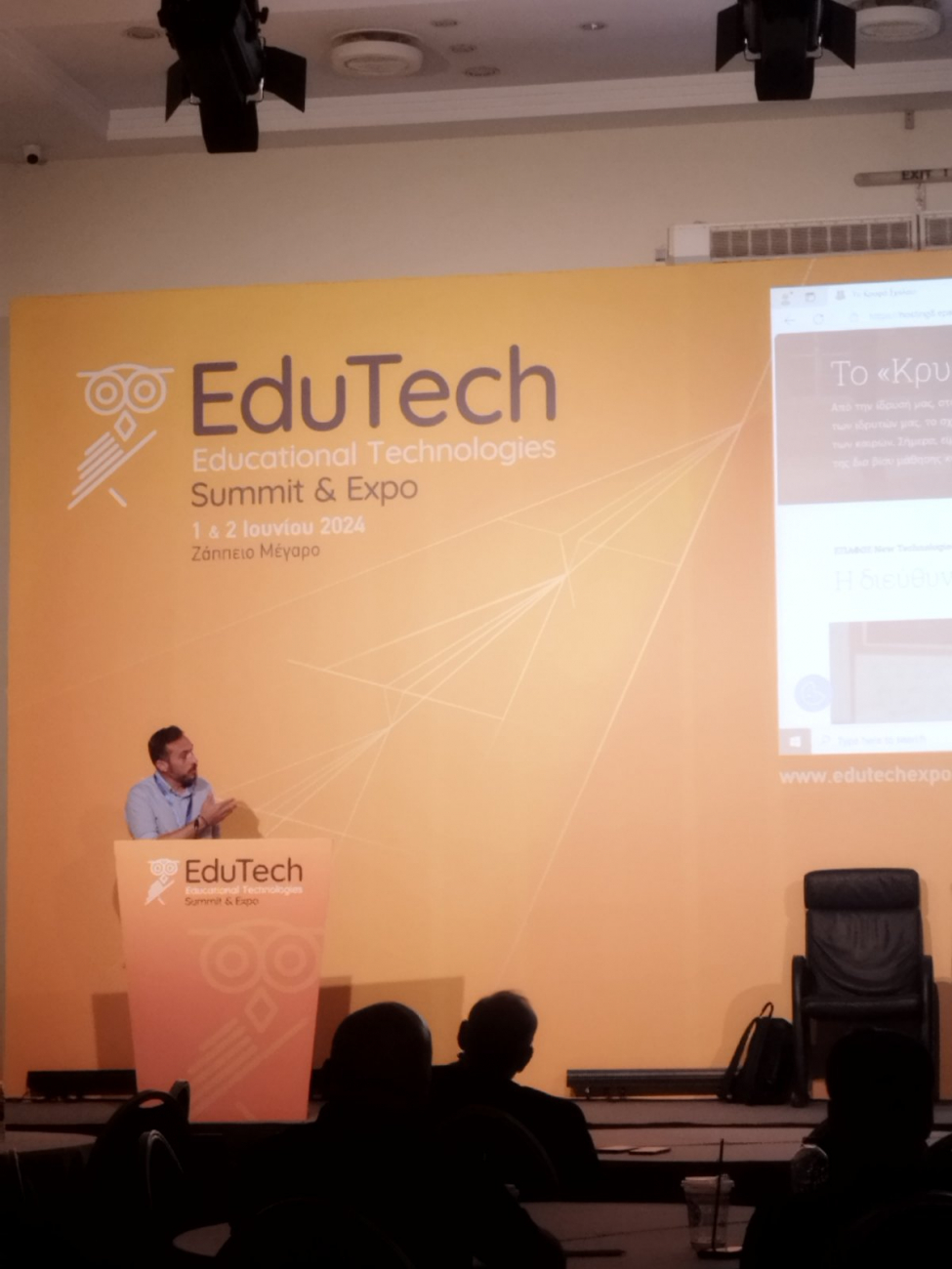 Ο ΕΠΑΦΟΣ με χαρά ανακοινώνει την επιτυχημένη συμμετοχή της στην έκθεση "EduTech Summit & Expo 2024" που πραγματοποιήθηκε την 1η και 2η Ιουνίου 2024 στο Ζάππειο Μέγαρο. Ως εκθέτης και χορηγός, είχαμε την ευκαιρία να παρουσιάσουμε τις καινοτόμες λύσεις μας, ενώ ο Γενικός Διευθυντής μας, Χρήστος Χαλδαιόπουλος, παρέθεσε μια εμπνευσμένη ομιλία για την εφαρμογή της Τεχνητής Νοημοσύνης στον εκπαιδευτικό χώρο.