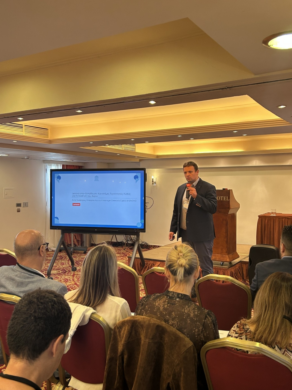 - Οι ολοκληρωμένες Lenovo ΑΙ λύσεις, οι υπηρεσίες και ο τεχνολογικός εξοπλισμός για τις ανάγκες της εκπαιδευτικής κοινότητας, όπως αναλύθηκαν από τον από τον Άγη Τραϊφόρο, Enterprise Account Manager Greece & Cyprus.