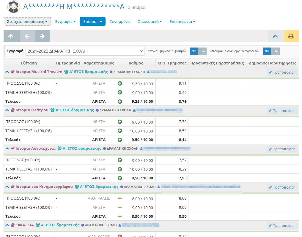 Ακολουθούν φωτογραφίες από την πλατφόρμα της Δραματικής Σχολής.