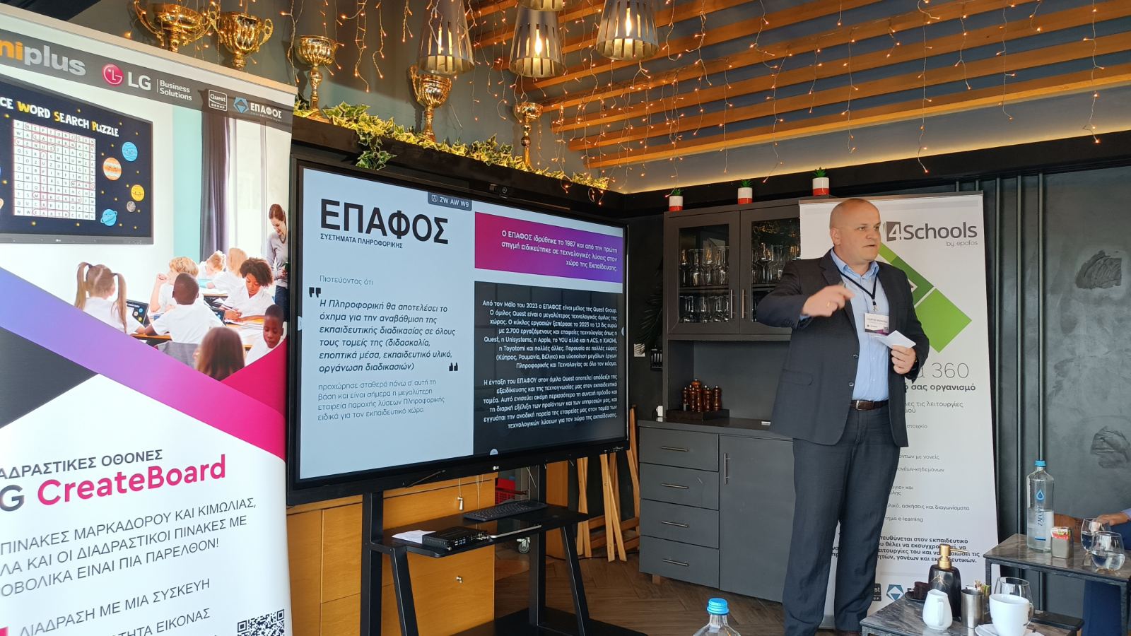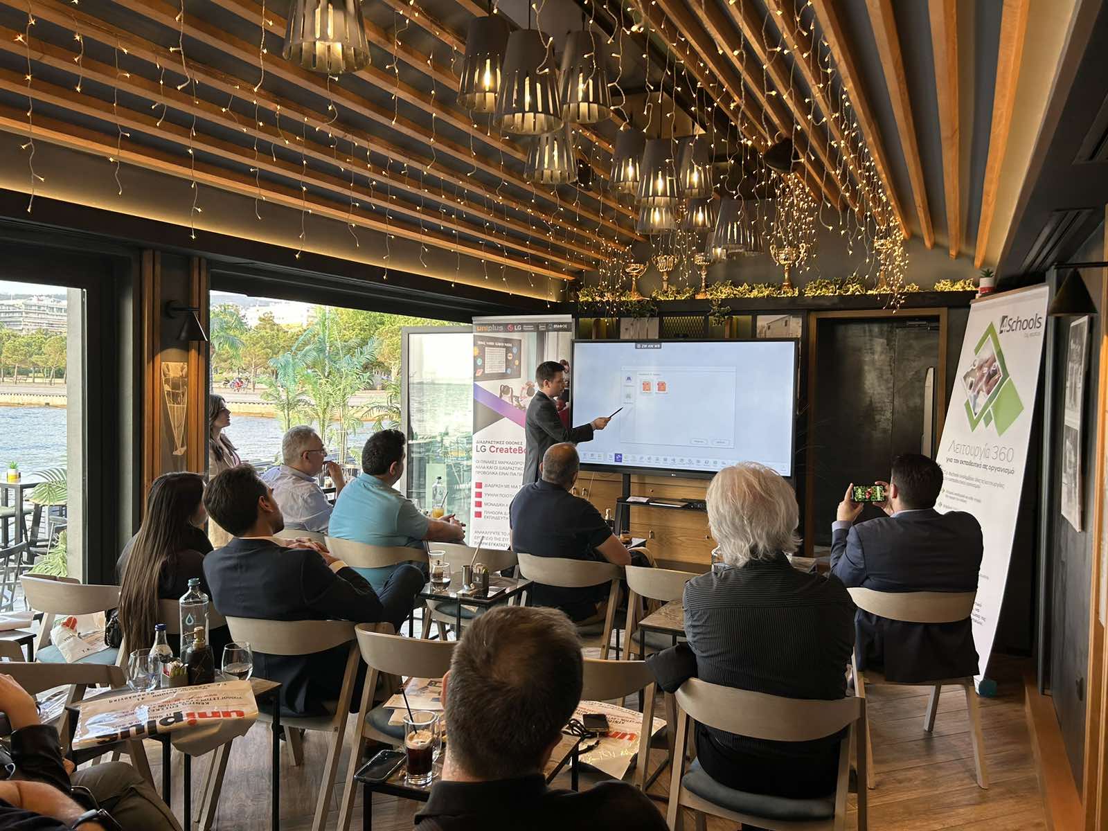 Την Τετάρτη, 17 Απριλίου, ο ΕΠΑΦΟΣ σε συνεργασία με την Uniplus και την LG πραγματοποίησαν ένα επιτυχημένο Διαδραστικό Απόγευμα στο CIEL Bar Restaurant στη Θεσσαλονίκη. Στόχος της εκδήλωσης ήταν να προσφέρει σε στενούς συνεργάτες ιδιωτικών εκπαιδευτικών οργανισμών μια πρώτη επαφή με την καινοτόμο τεχνολογία της διαδραστικής οθόνης LG CreateBoard και τα οφέλη που μπορεί να φέρει στον χώρο της εκπαίδευσης.