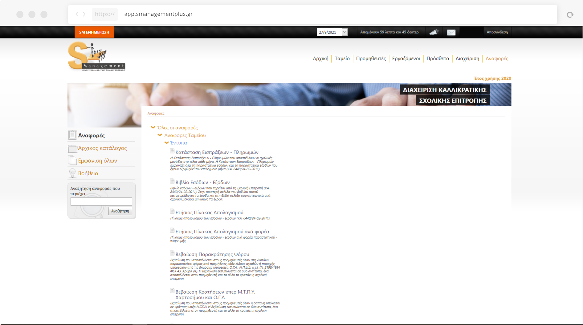 Το SManagement έχει ξεπεράσει από καιρό το στάδιο του απλού «λογιστικού προγράμματος» και είναι πλέον ένα Ολοκληρωμένο Διαχειριστικό και Πληροφοριακό Περιβάλλον και μια πραγματική επένδυση για τους υπευθύνους των Σχολικών Επιτροπών και των εκπαιδευτικών θεμάτων των Δήμων.